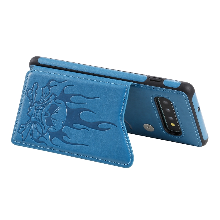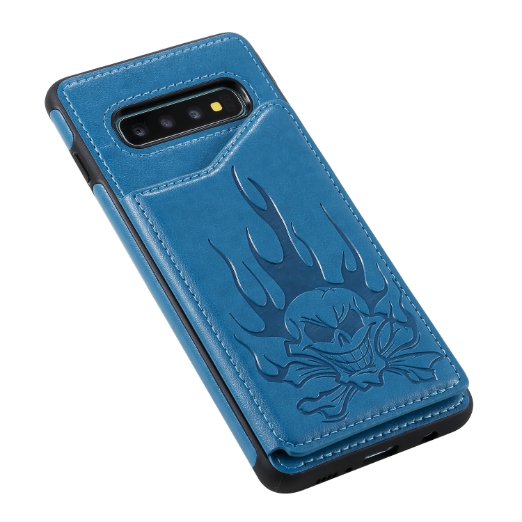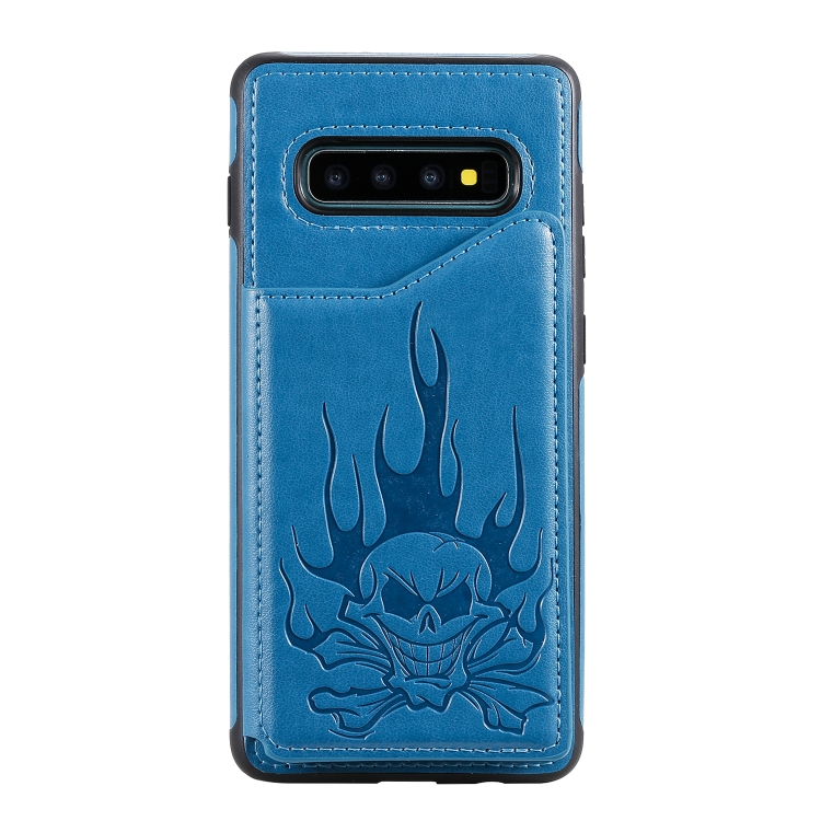 Skull Head Embossing Pattern Shockproof Protective Case with Holder & Card Slots & Wallet