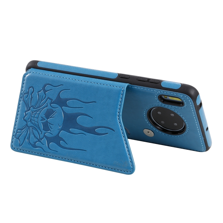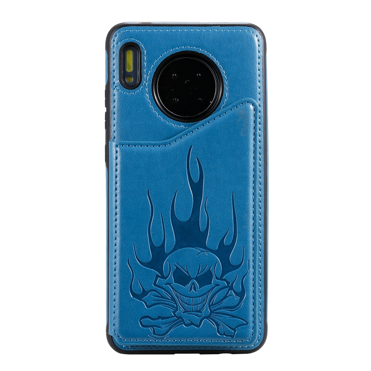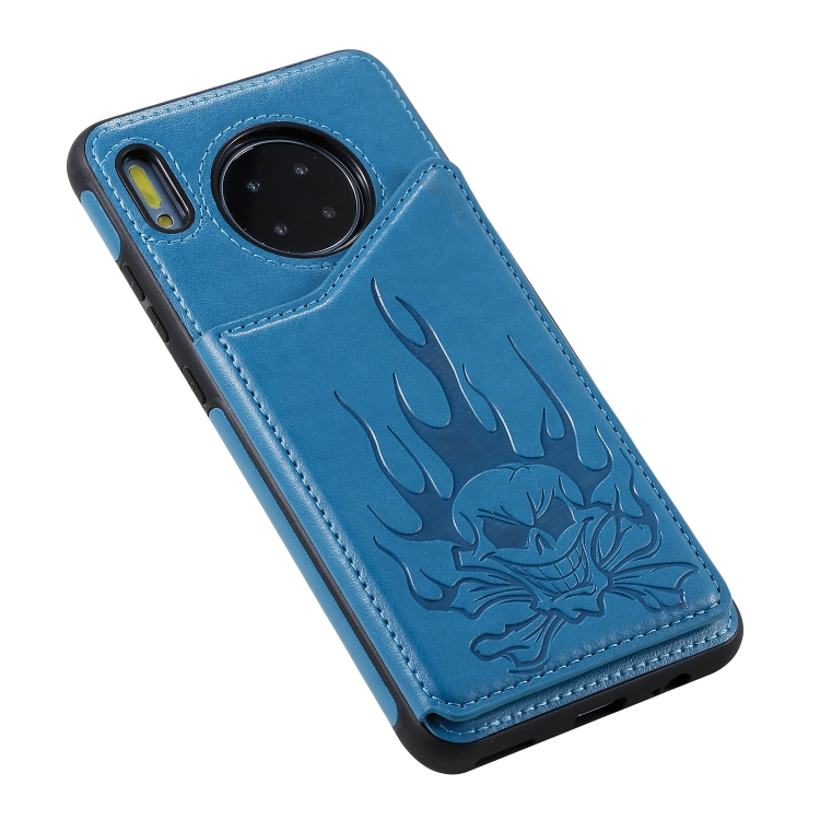 Skull Head Embossing Pattern Shockproof Protective Case with Holder & Card Slots & Wallet