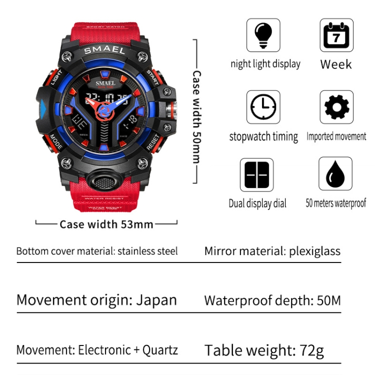 1. Function: dual display dial, alarm, chronograph, calendar, 24-hour indication, week display, month display