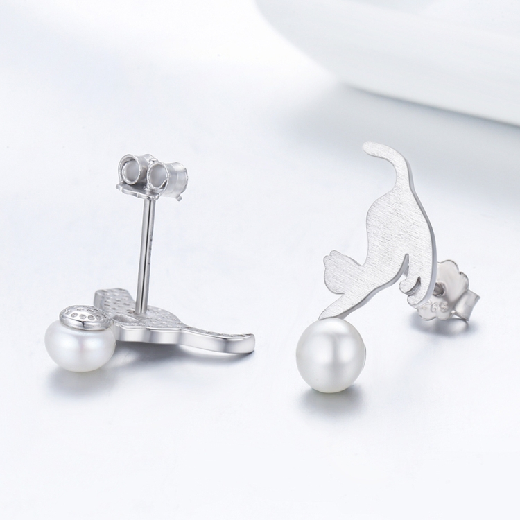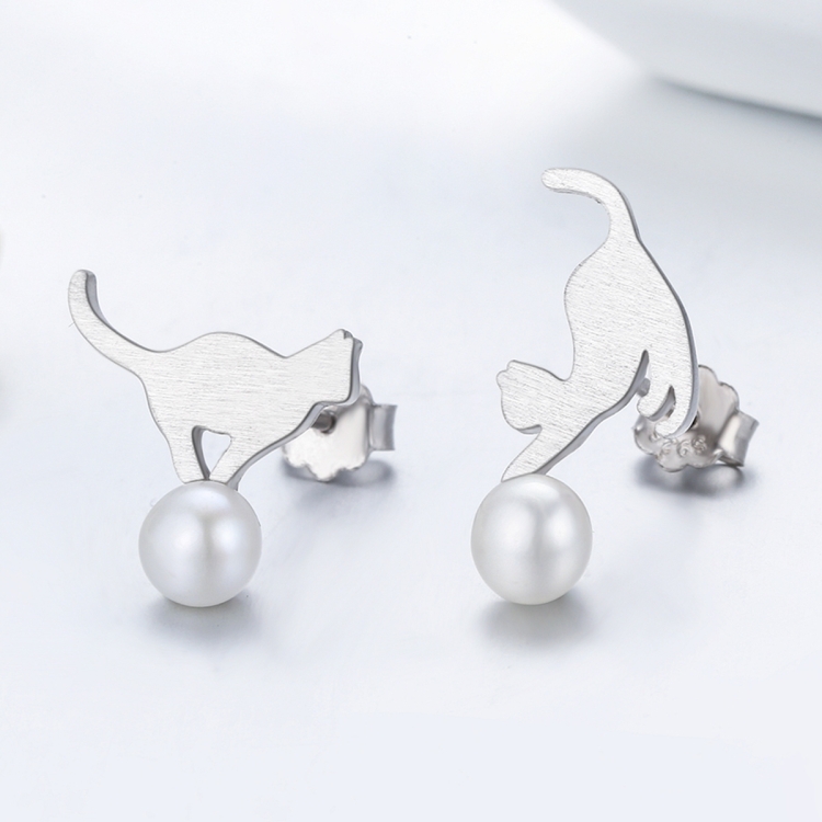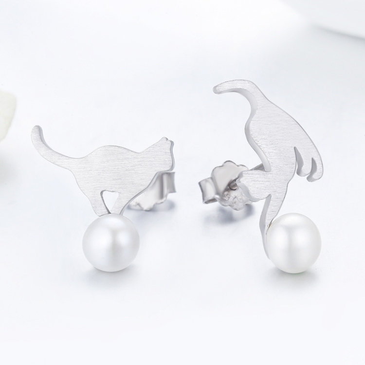 Small Animal Jewelry Sterling Silver Pearl S925 Meow Earrings