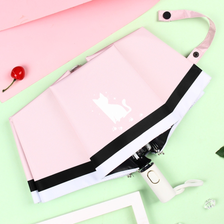 Small Fresh Three-Fold Automatic Black Rubber Sunscreen Umbrella Cartoon Cat Sunny Rain Umbrella
