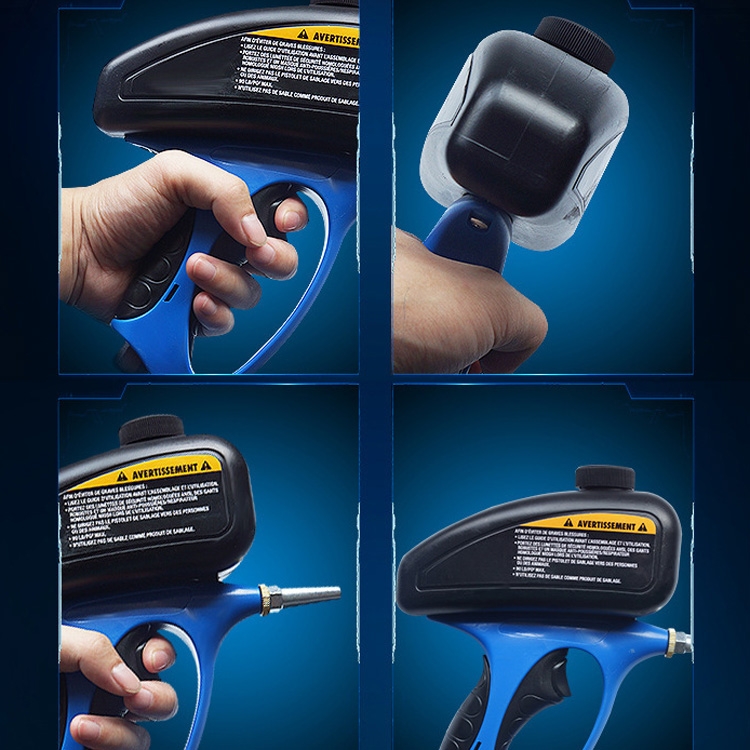 9. Features: large storage hole volume, sandblasting gun head (replaceable), rubber handle comfortable and not slippery, manual trigger switch, easy to use, easy to operate