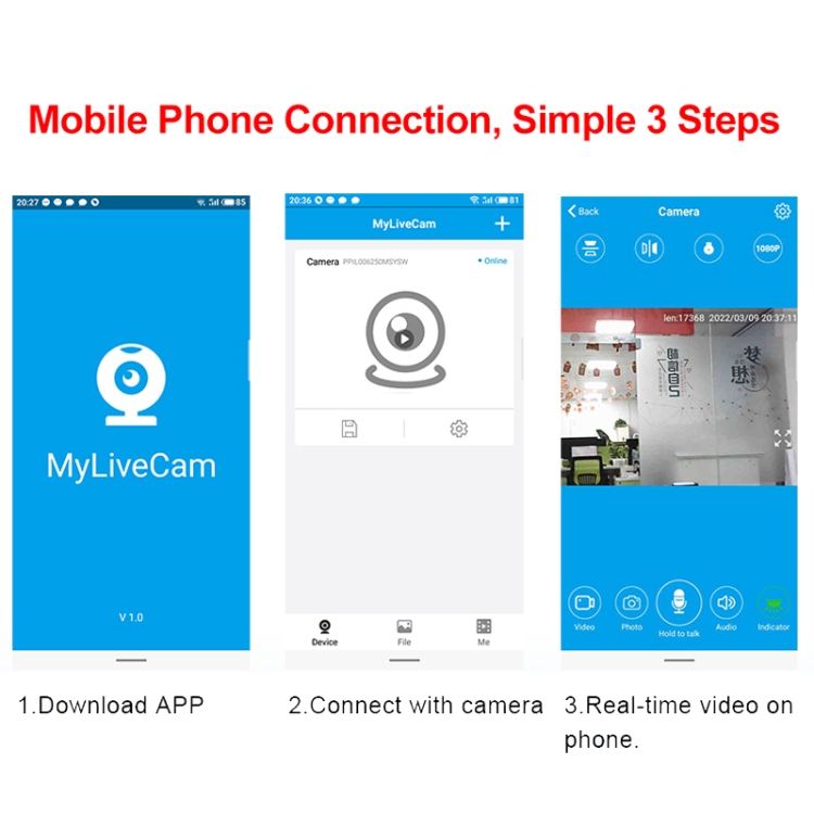 1. Mobile phone remote monitoring, the camera is connected to WiFi, cell phones / tablets, etc. remote viewing