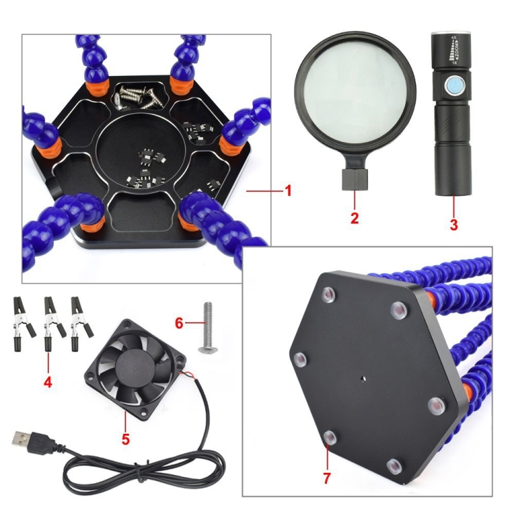 SN6SB-USB Six-Claw LED Lights Welding Station With Magnifying Glass & Fan