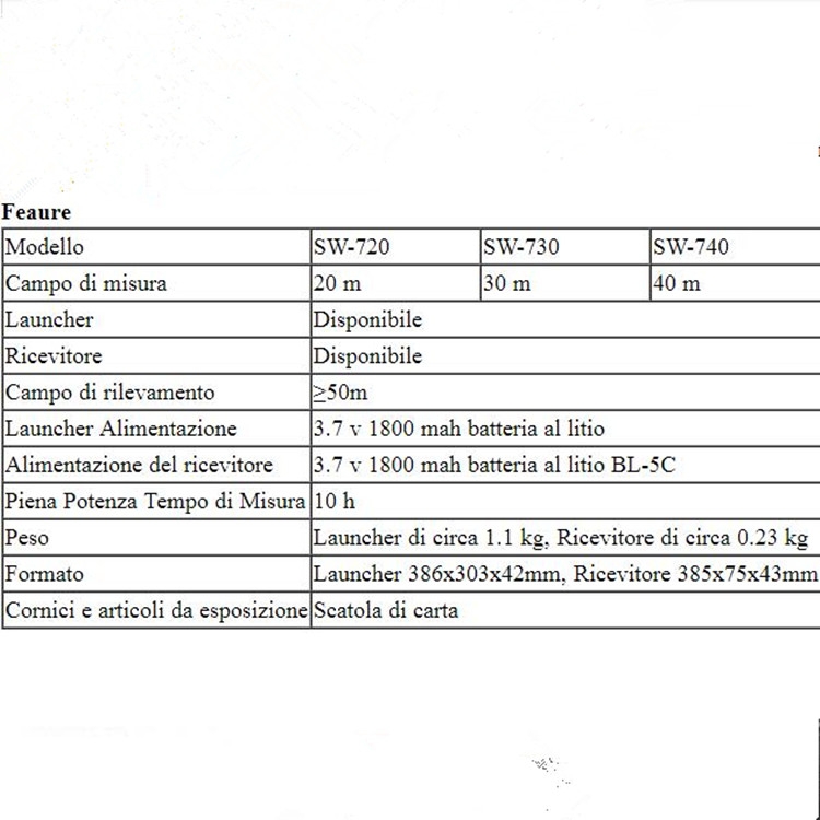 | Option | SW720 Standard (20 meters), SW730 Standard (30 meters), SW740 Standard (40 meters) |