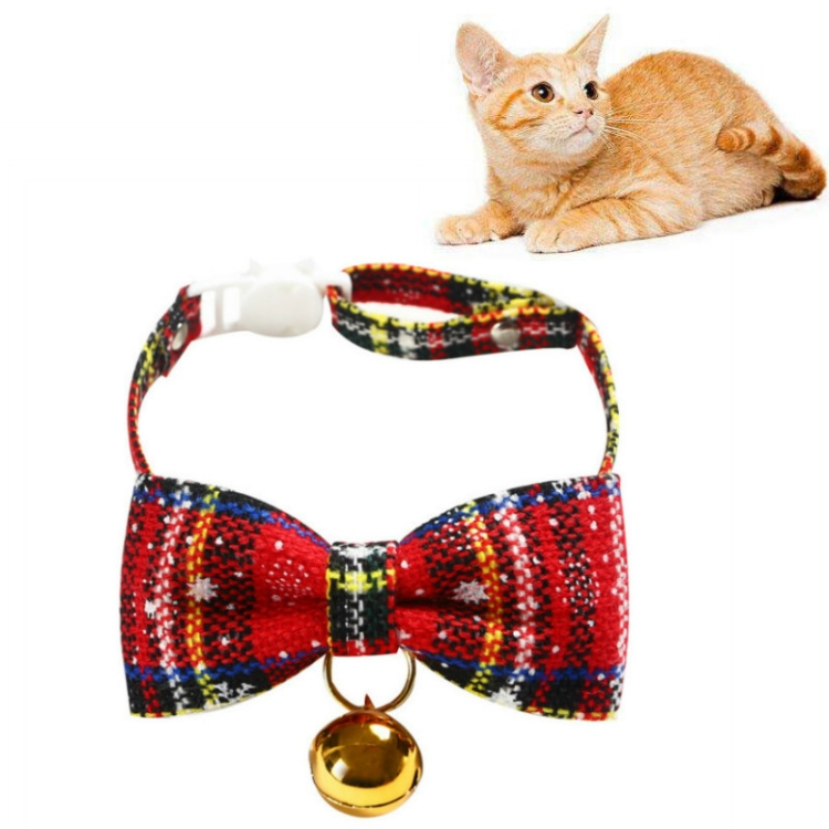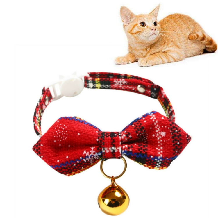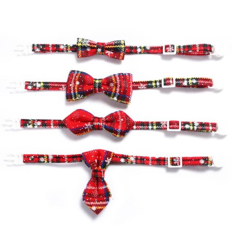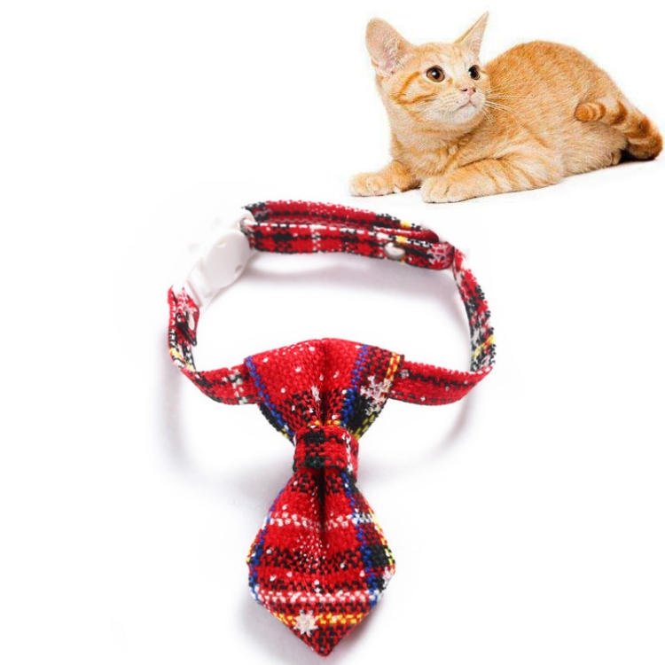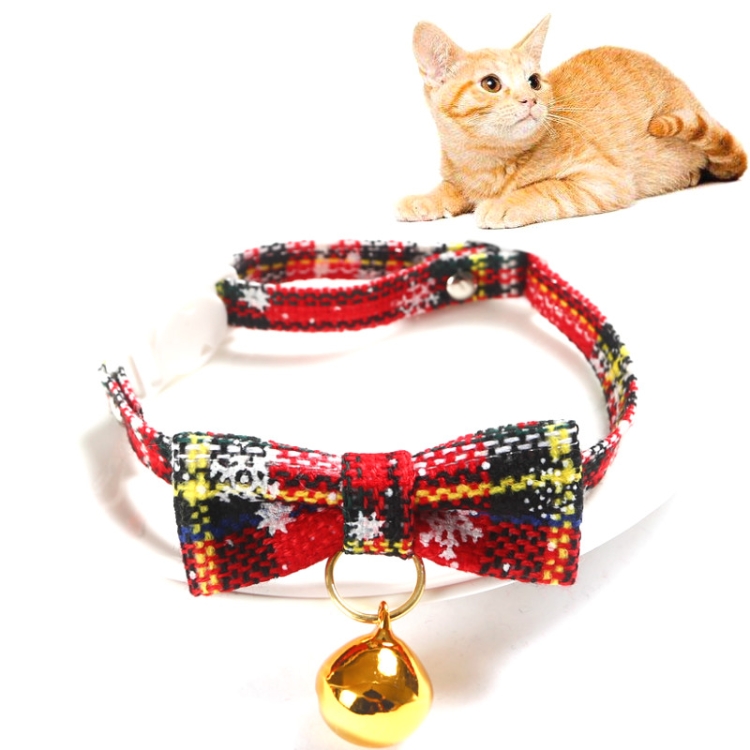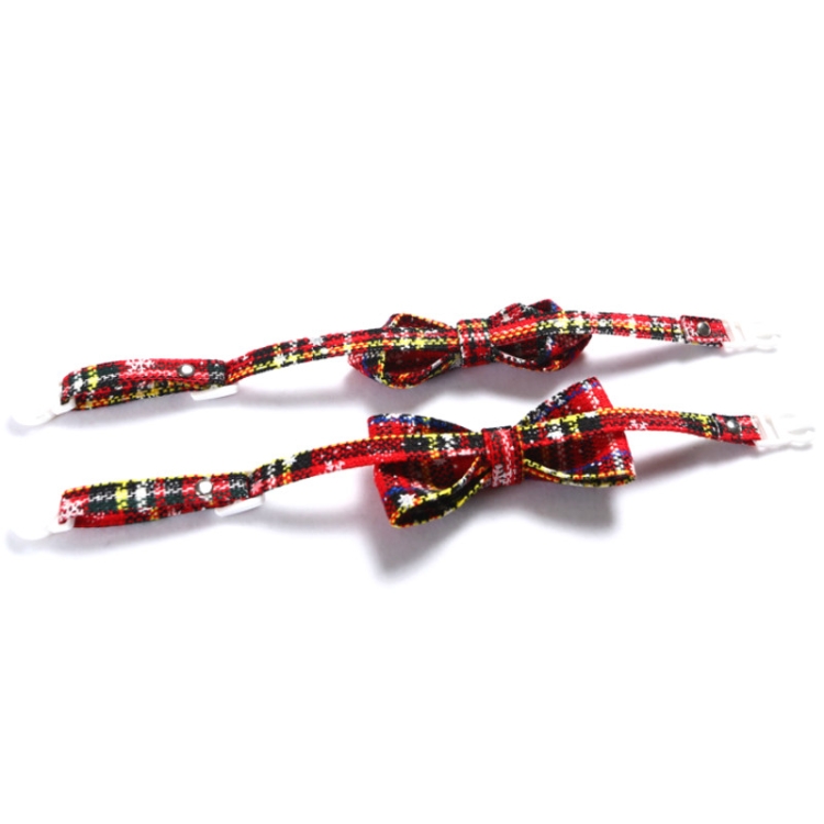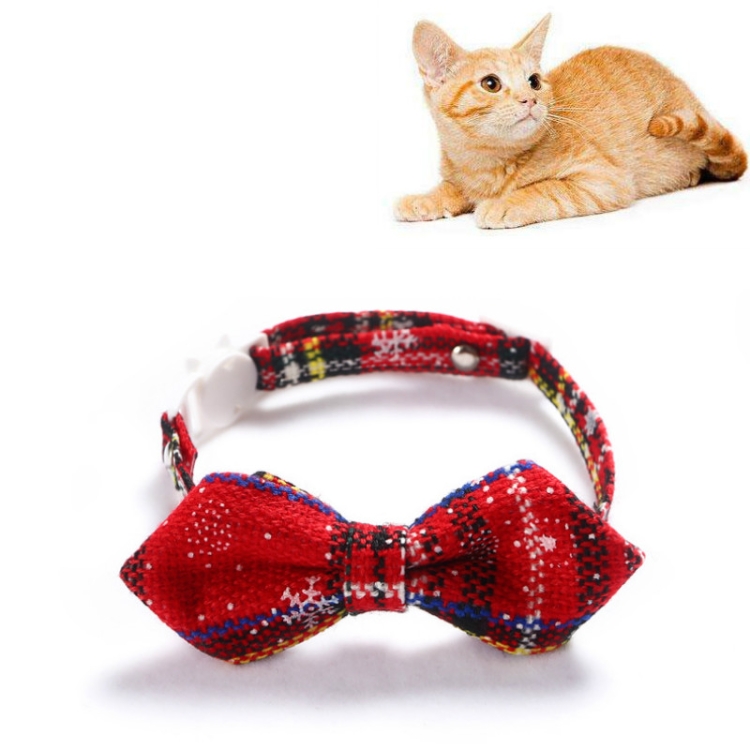 Snowflake Christmas Red Plaid Adjustable Pet Bow Tie Collar Bow Knot Cat Dog Collar