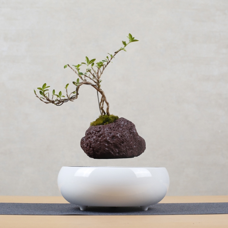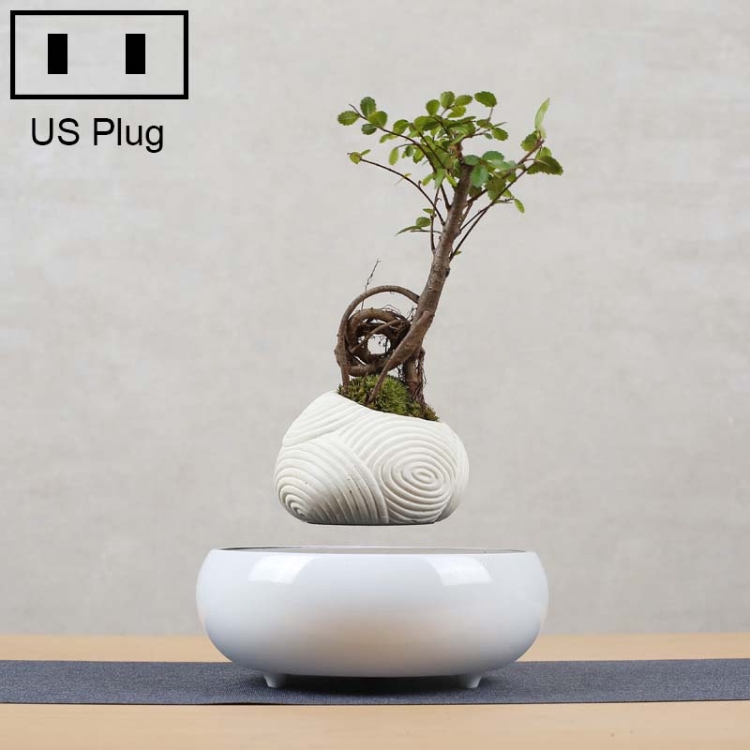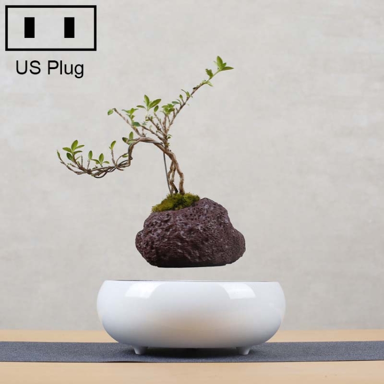 Soil Color Flower Pot + Imitation Ceramic Resin Base Magnetic Levitation Potted Plant Home Decoration, US Plug