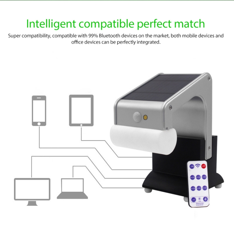 Solar Power Waterproof Human Body Induction 6-modes Remote Control Light with Bluetooth Speaker Base