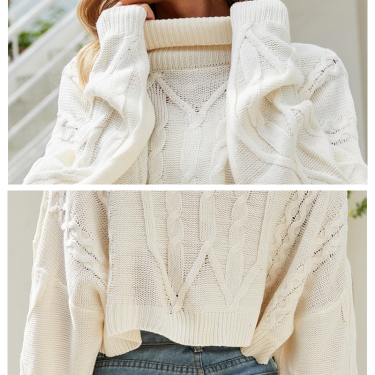 Solid Color High Neck Pullover Knitted Top Short Stranded Flowers Knitted Sweater