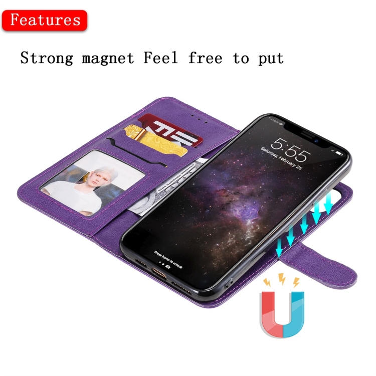 Solid Color Horizontal Flip Protective Case with Holder & Card Slots & Wallet & Photo Frame & Lanyard