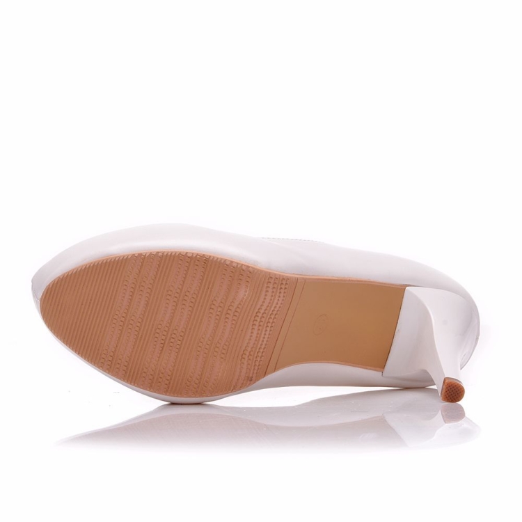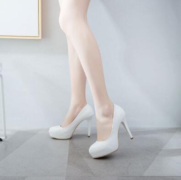 Solid Color PU Leather Ladies High Heels Slip-On Party Dress Shoes