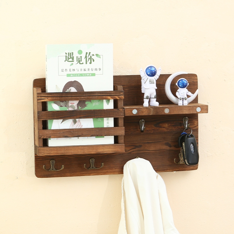 Solid Wood Wall-Mounted Retro Storage Rack Shelf Entryway Mail And Key Holder