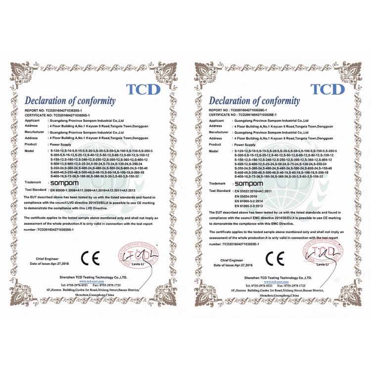 SOMPOM S-180-12 180W 12V 15A Iron Shell Driver LED Light Strip Lighting Monitor Power Supply