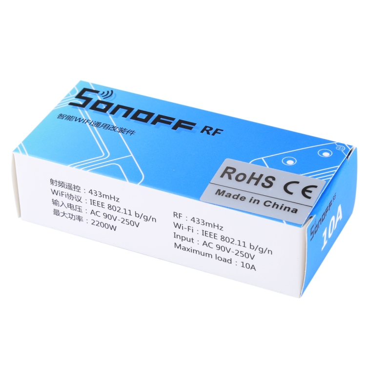 2. RF switch is a Sonoff version with a 433MHz RF receiver module inside.This wireless switch can be used together with the RF remote controller, which enables you to control appliances in indoor environment.