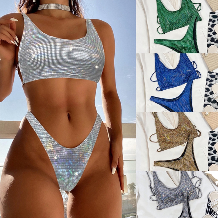 Split Multicolor Gradient Bikini Drawstring Beauty Back Sexy Swimsuit