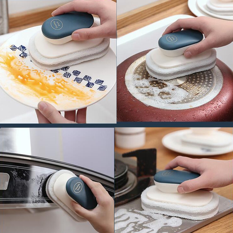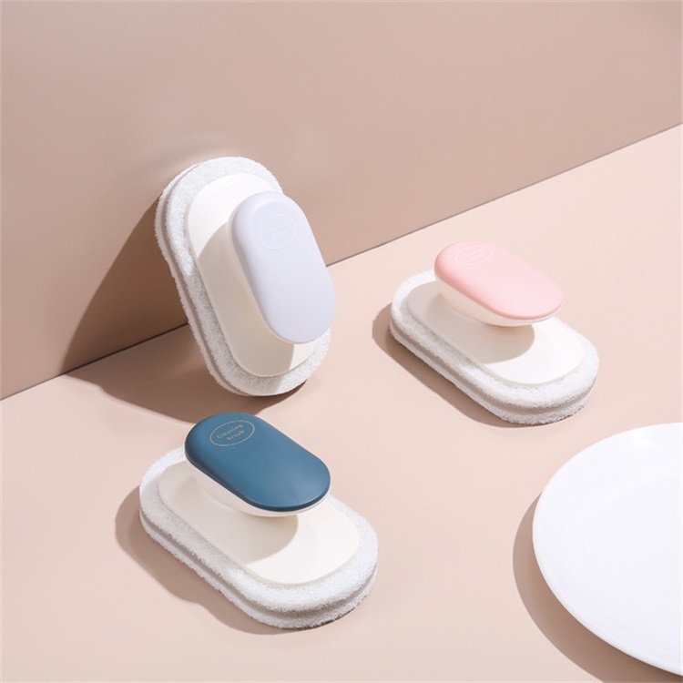 Sponge Brush Clean Countertop Multi-function Kitchen Bathroom Scouring Pad Wash Dishes Pot Brush with Handle