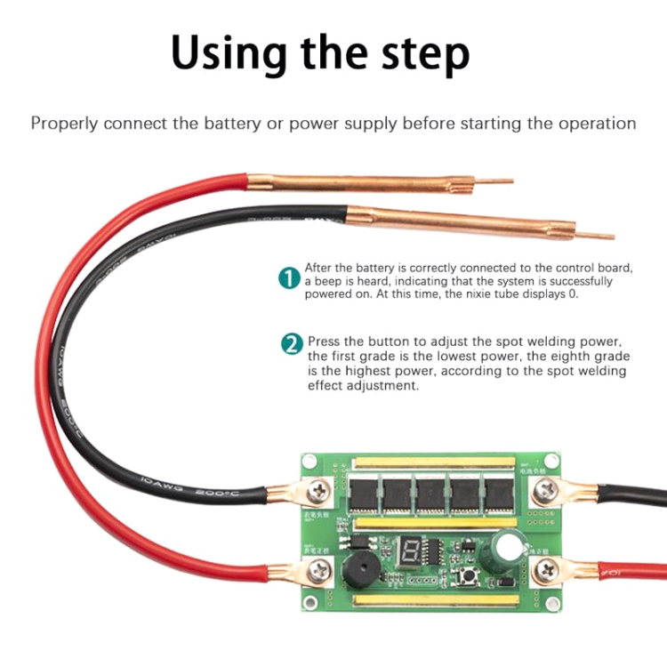 2. The recommended power supply voltage is 7V-16V, and the working current is 100-300A. Beyond this range, it may damage the control board