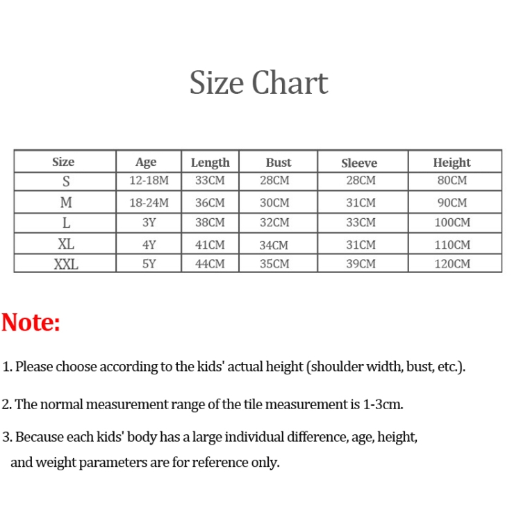 1. Please choose according to the child’s actual height (shoulder width, chest circumference, etc.).