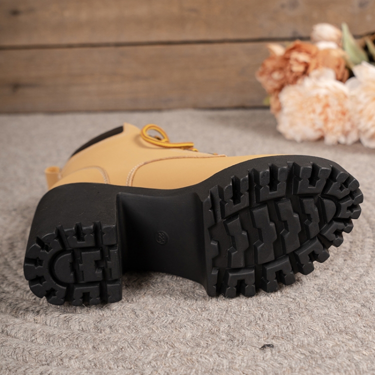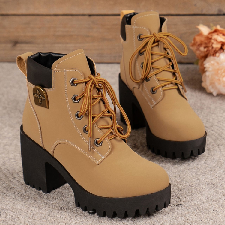 Spring Autumn Women Short Boots Chunky High Heel Leather Boots Lace-up Ladies Shoes