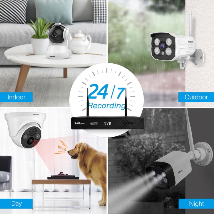 SriHome NVS001 1080P 4-Channel NVR Kit Wireless Security Camera System, Support Humanoid Detection / Motion Detection / Two Way Audio / Night Vision, AU Plug