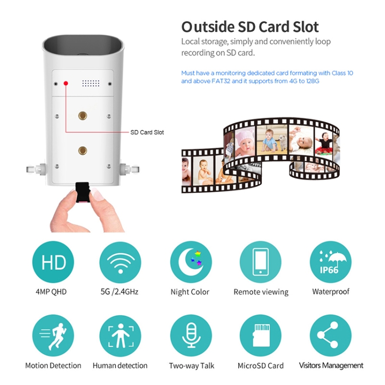3. Built-in 2 infrared lights and 2 white lights, night vision can be full color