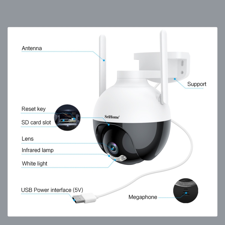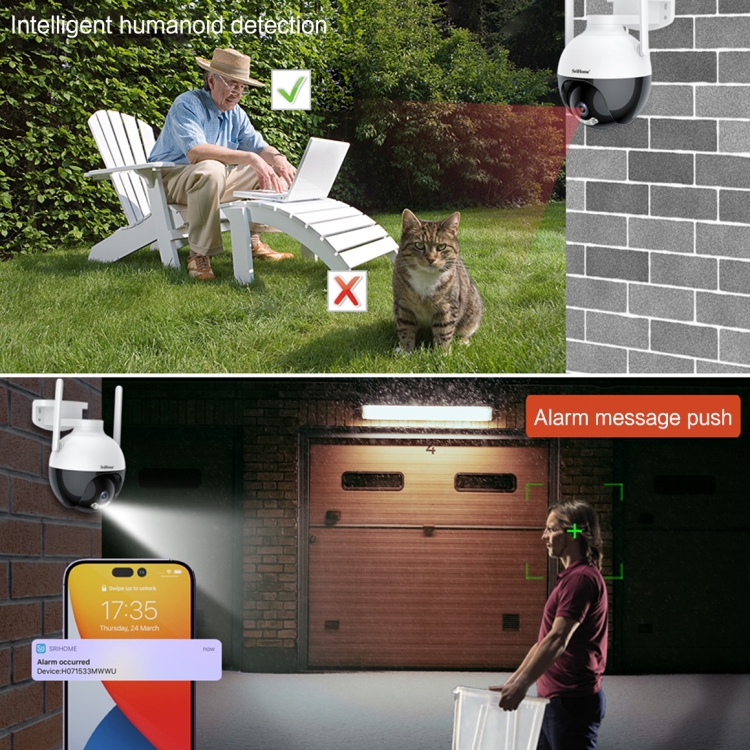 SriHome SH045 2MP DC5V IP66 Waterproof AI Auto Tracking Night Vision WiFi HD Camera
