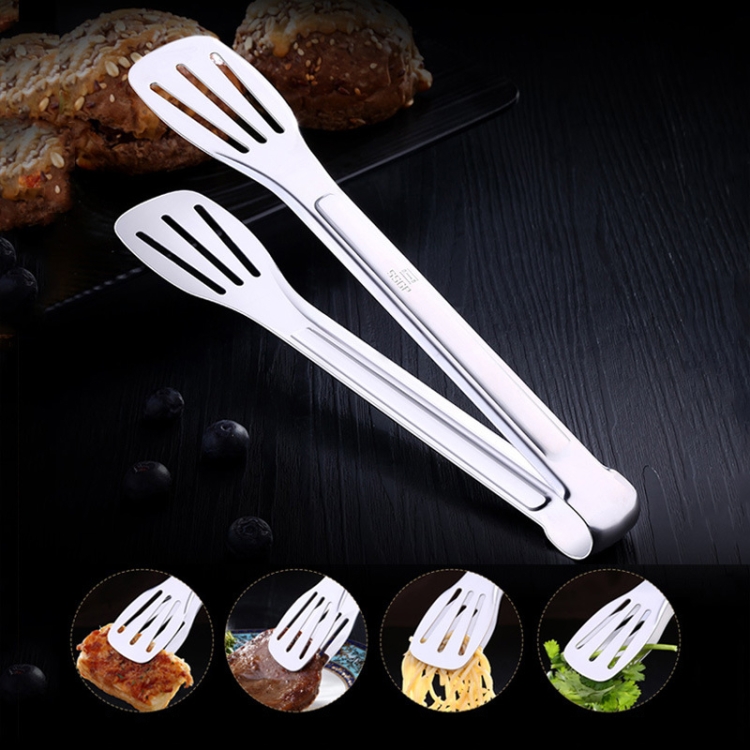 Stainless Steel Barbecue Steak Clip Tongs BBQ Roasting Shovels Leak Steak Shovel Spatula Food Clamp Bread Clips, Length: 28.5cm