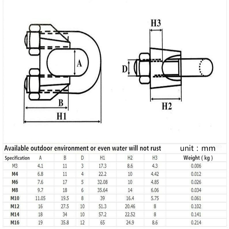 Stainless Steel Clip U-shaped Wire Rope Card Head Rope Wire Rope Rolling Head Buckle