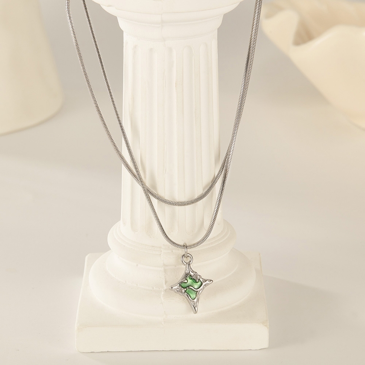 Stainless Steel Quadrangle Pendant Temperament Necklace
