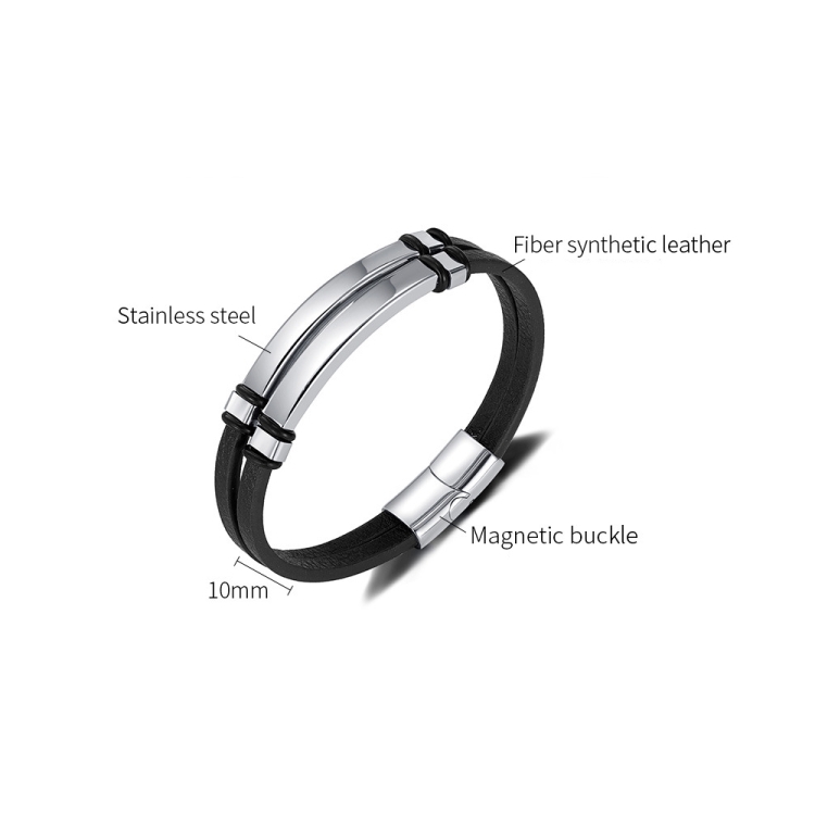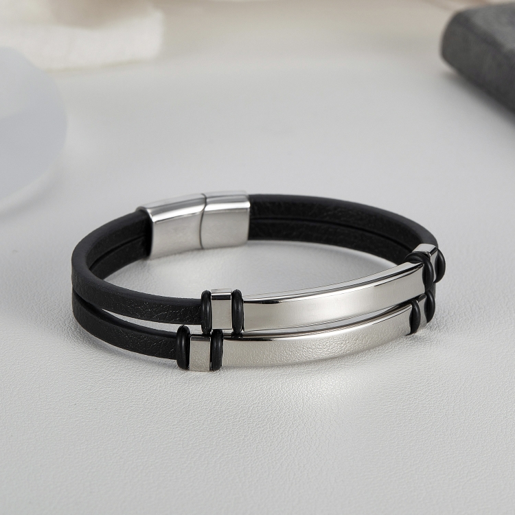 Stainless Steel Simple Glossy Double Braided Leather Bracelet