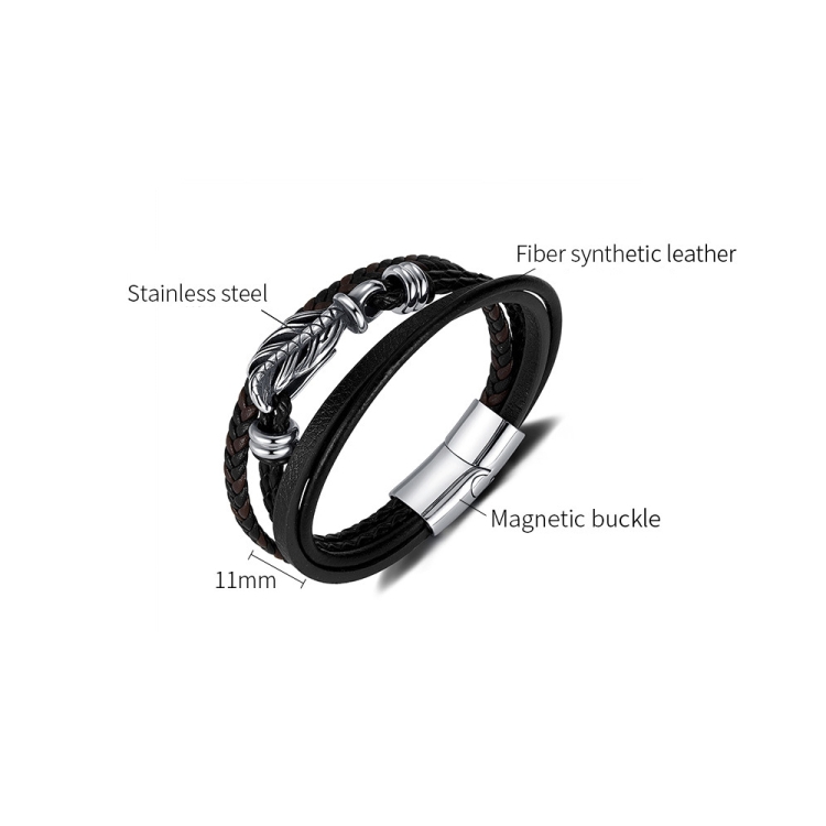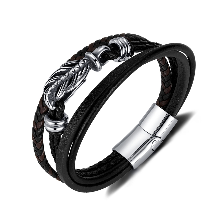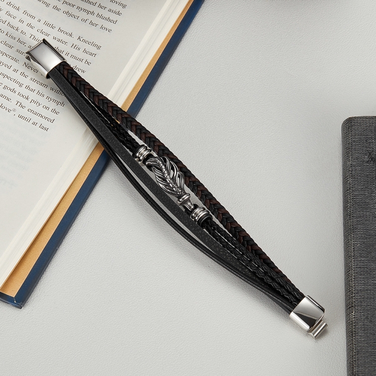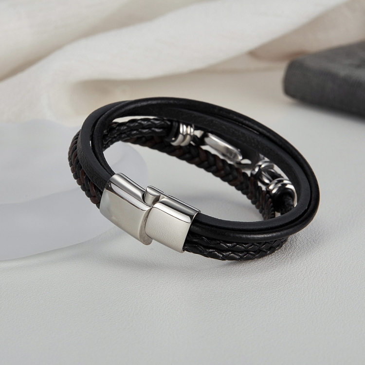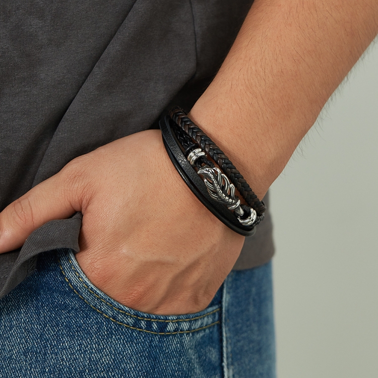 Stainless Steel Vintage Multi-Layer Braided Leather Bracelet