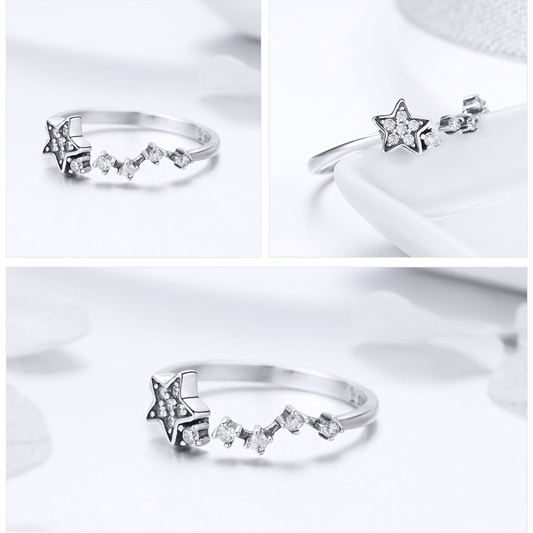Be the first to review “Star Inlaid Zircon Ring Hollow S925 Sterling Silver Ladies Five-pointed Star Open Ring”