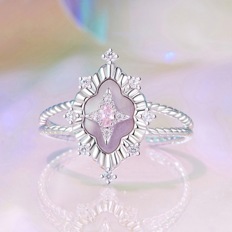 Starlight Pink-Shell Adjustable Open Ring Copper Retro Ring