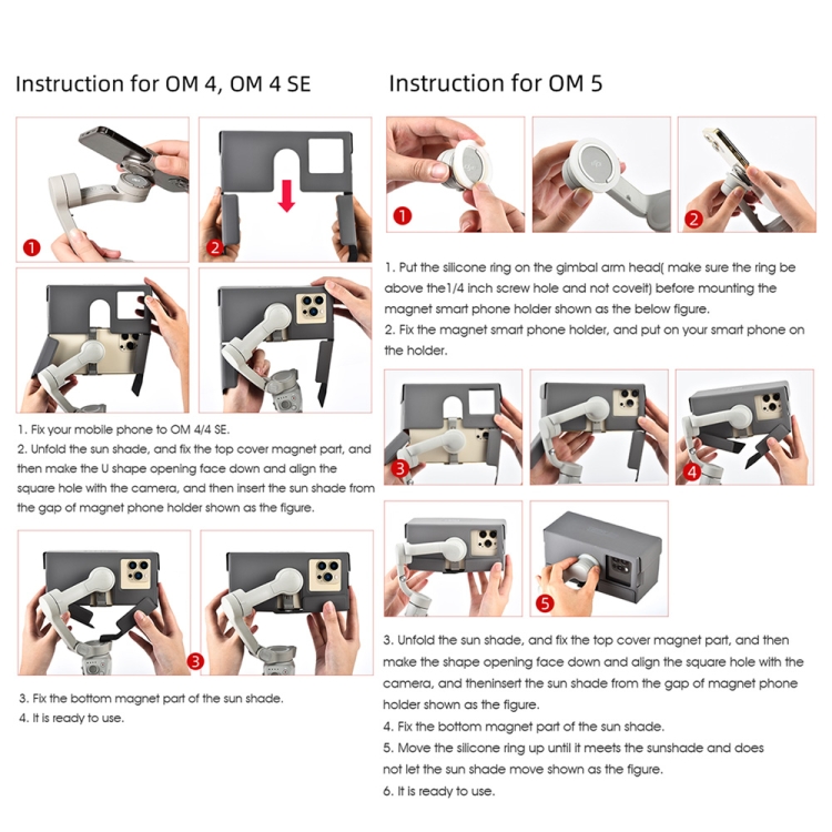4. It can be used for DJI OM 5/ OM 4 SE/ OM 4 handheld gimbal at the same time (a silicone ring is required when using OM 5)