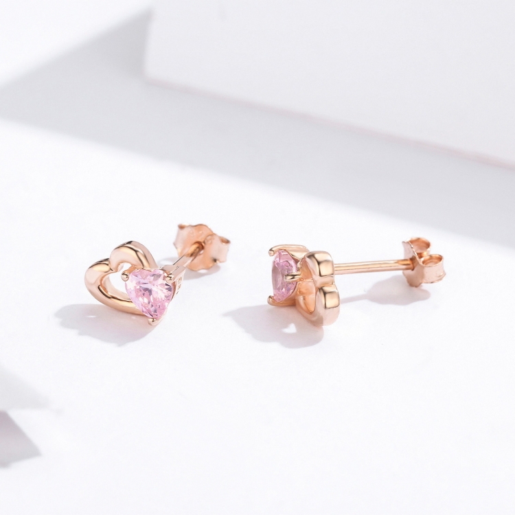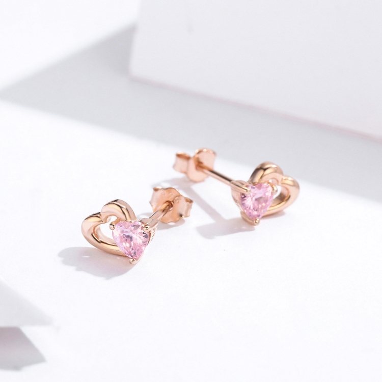 Sterling Silver Earrings Heart-shaped Rose Gold-plated Zircon Earrings