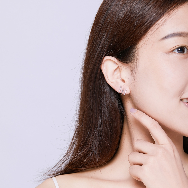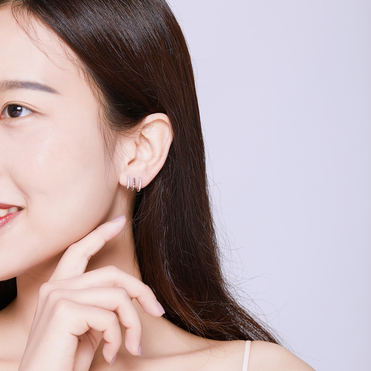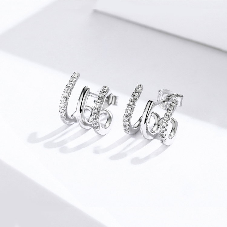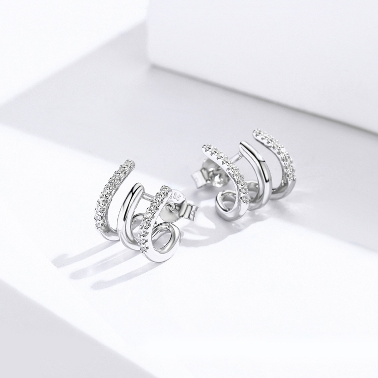 Sterling Silver Earrings Three-layer Twisted Silver Earrings Zircon Earrings