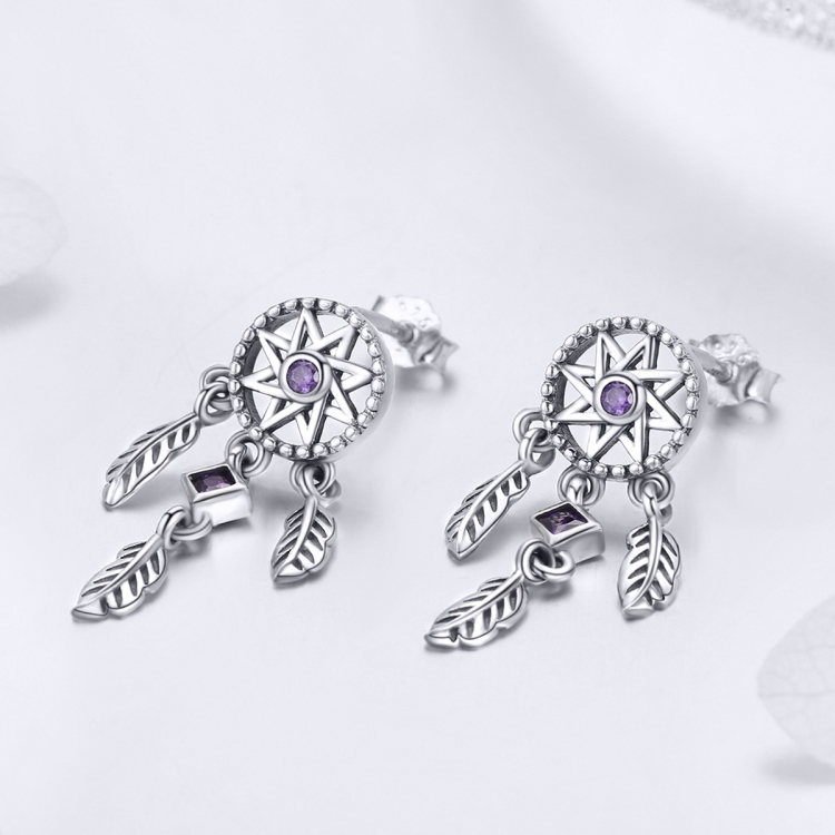 Sterling Silver Long Earrings Inlaid Female Earrings