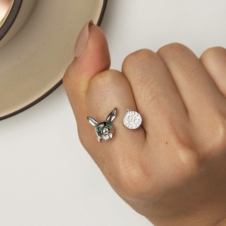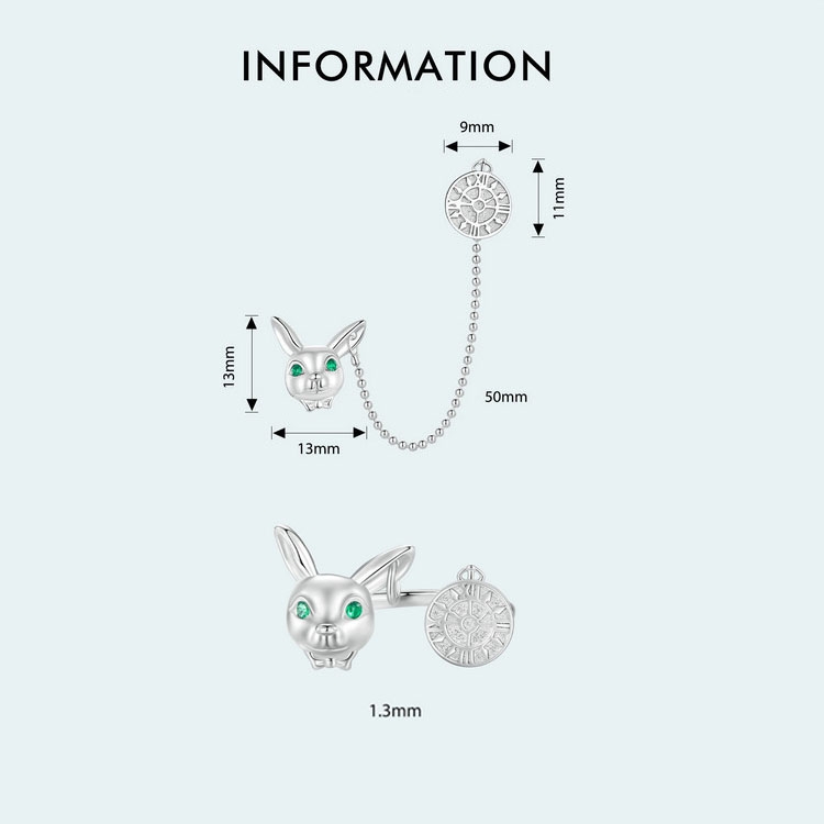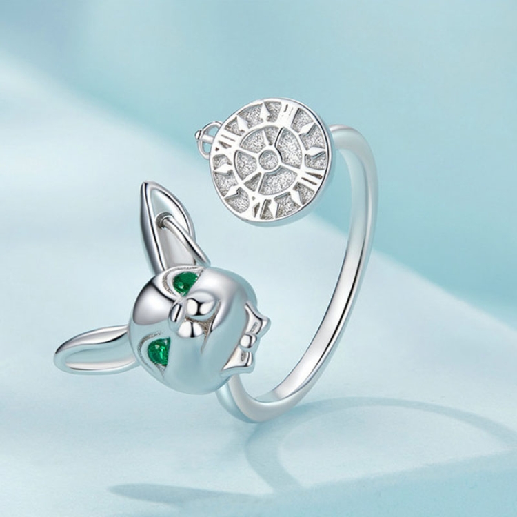Sterling Silver Rabbit Clock Stud Earrings Ring Set