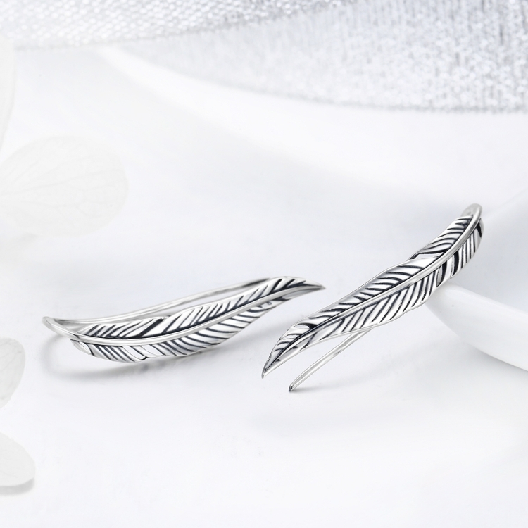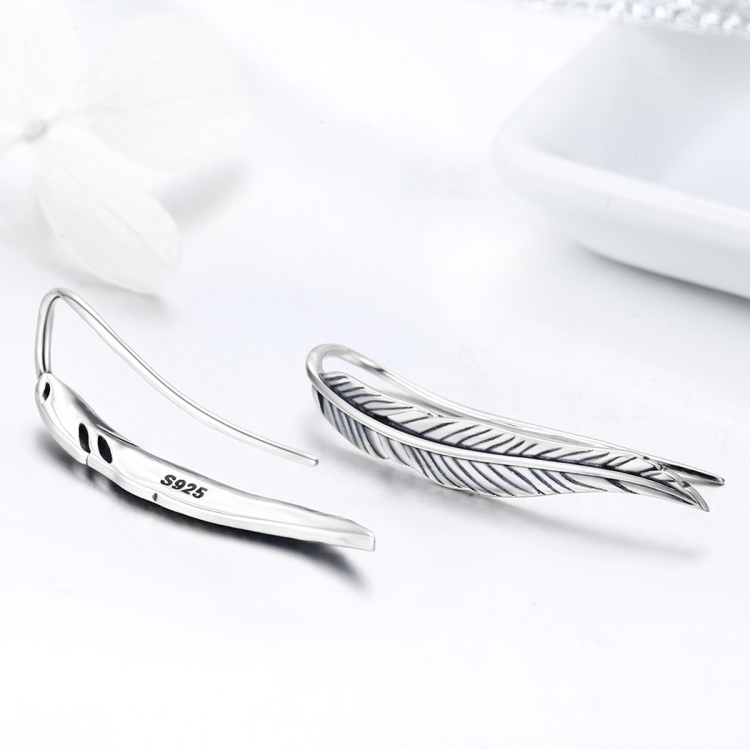 Sterling Silver Retro Style Female Earrings Simple Feather Earrings