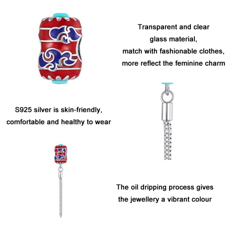 Sterling Silver S925 Auspicious Clouds Red Lantern Bracelet Bead Pendant