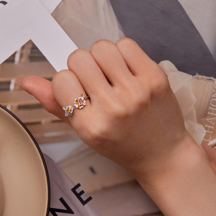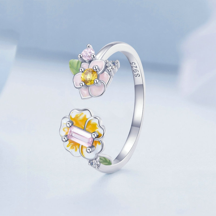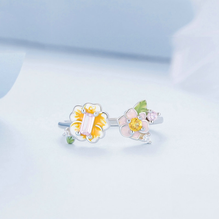 Sterling Silver S925 Beautiful Flower Plated Platinum Open Ring