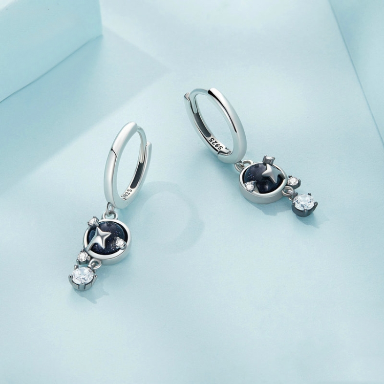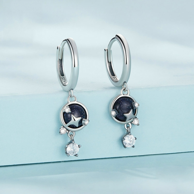 Sterling Silver S925 Blue Sandstone Starlight Zircon Earrings