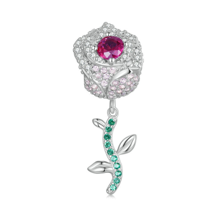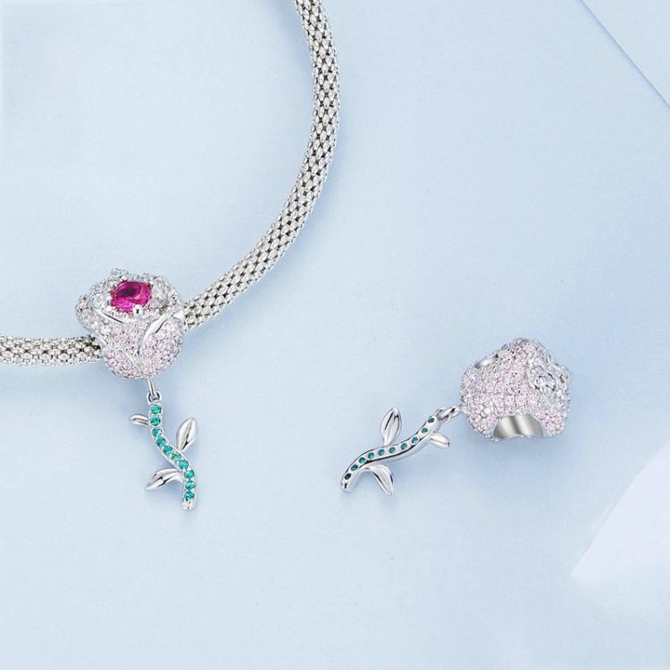 Sterling Silver S925 Budding Rose Zirconia Bracelet Beads