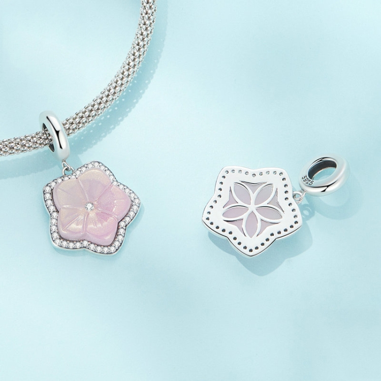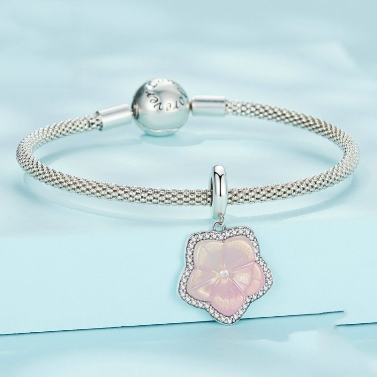 Sterling Silver S925 Cherry Blossom Beads Pink Flower Bracelet Accessories