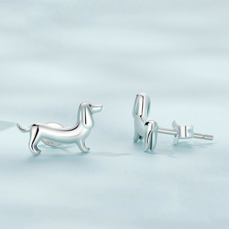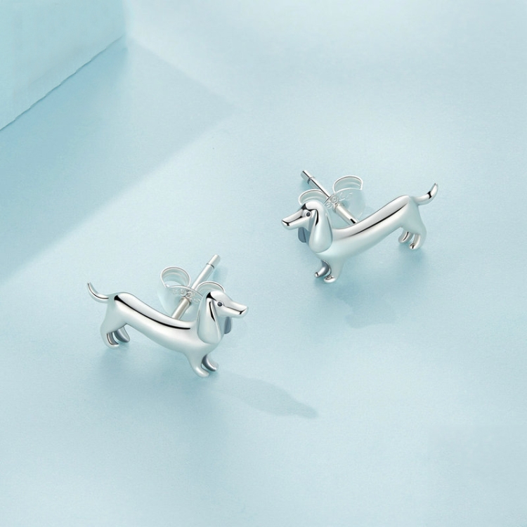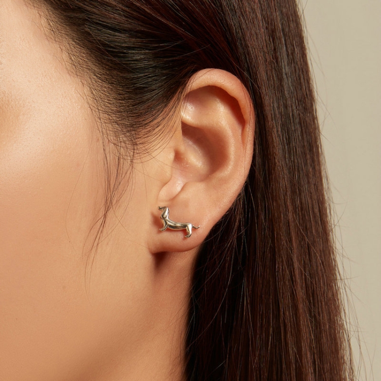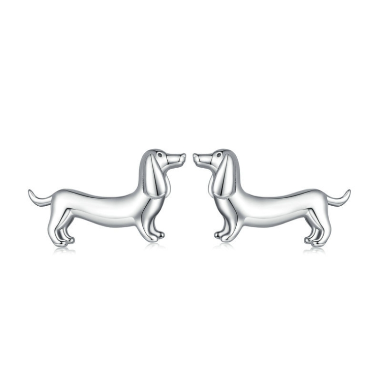 Sterling Silver S925 Cute Dachshund Animal Stud Earrings