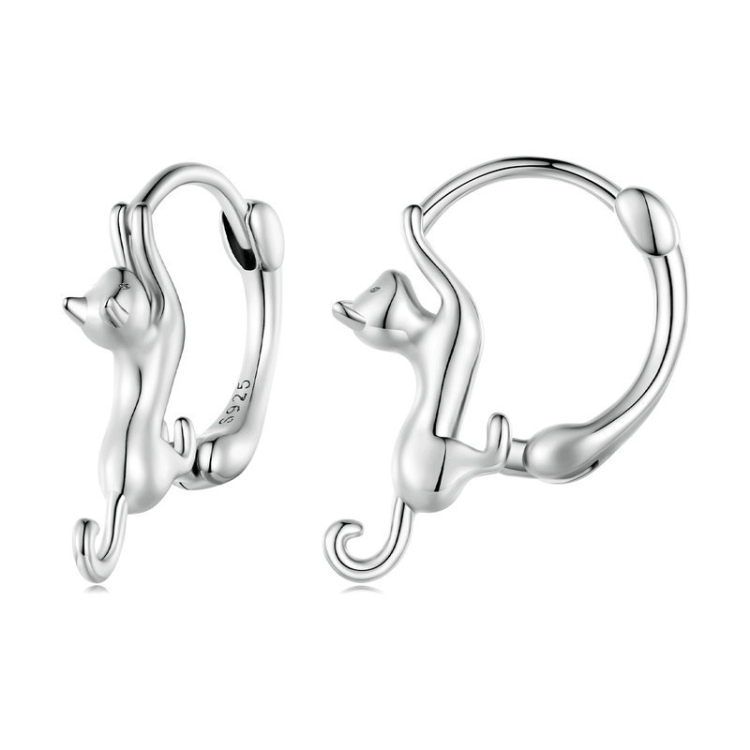 Sterling Silver S925 Diamond Stretch Cat Stretch Earrings, Size: