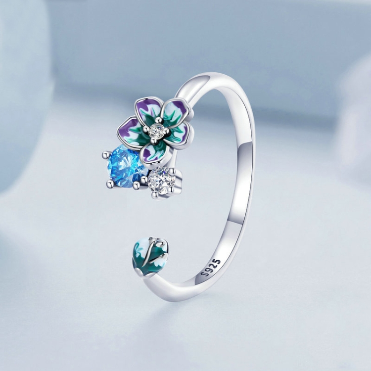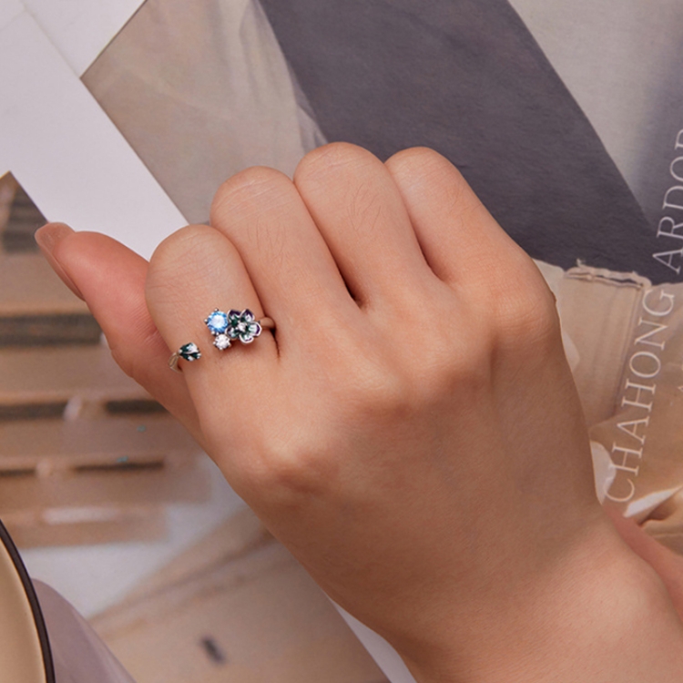 Sterling Silver S925 Gradient Zircon Floral Open Ring