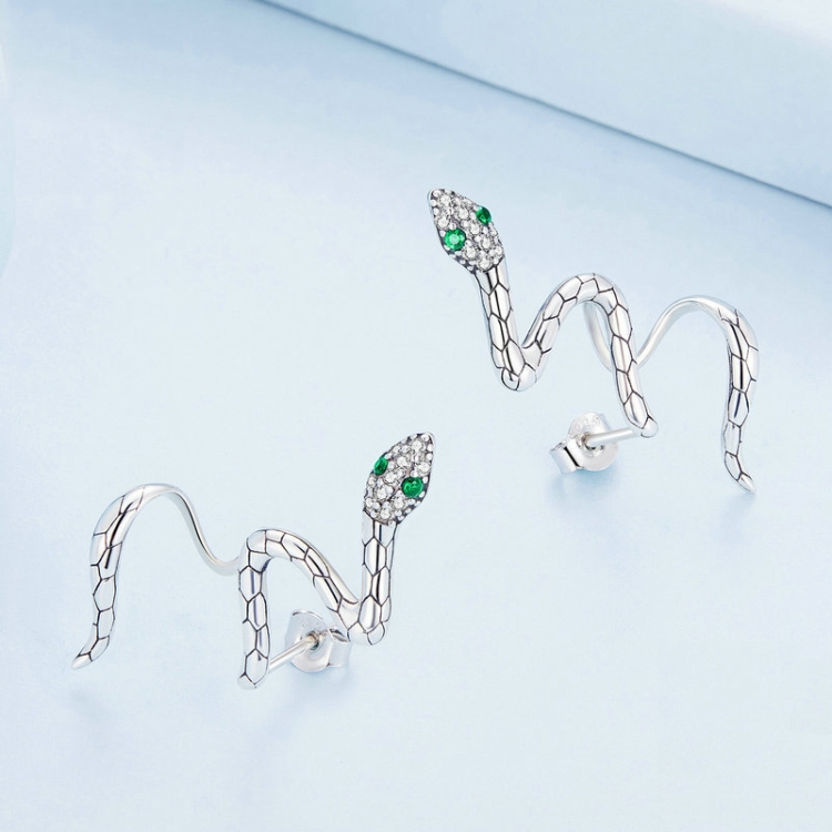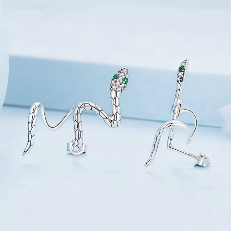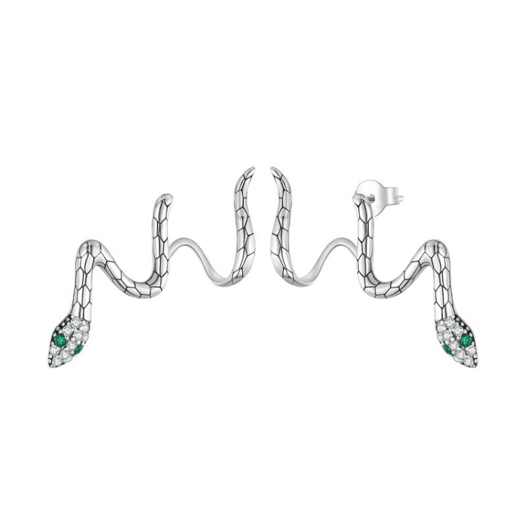 Sterling Silver S925 Guardian Snake Wrap Zirconia Earrings