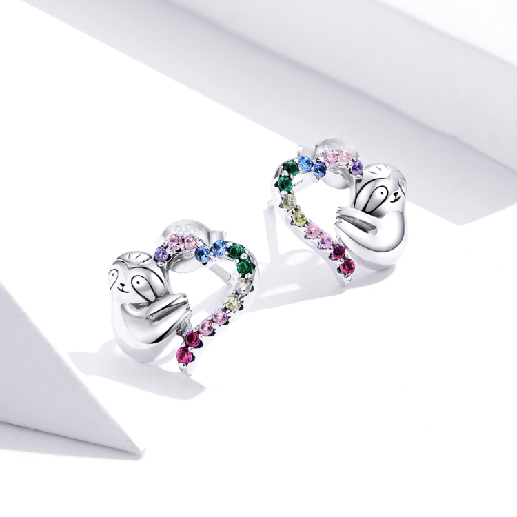 Sterling Silver S925 Heart-shaped Sloth Earrings Personalized Earrings Simple Temperament Female Silver Earrings