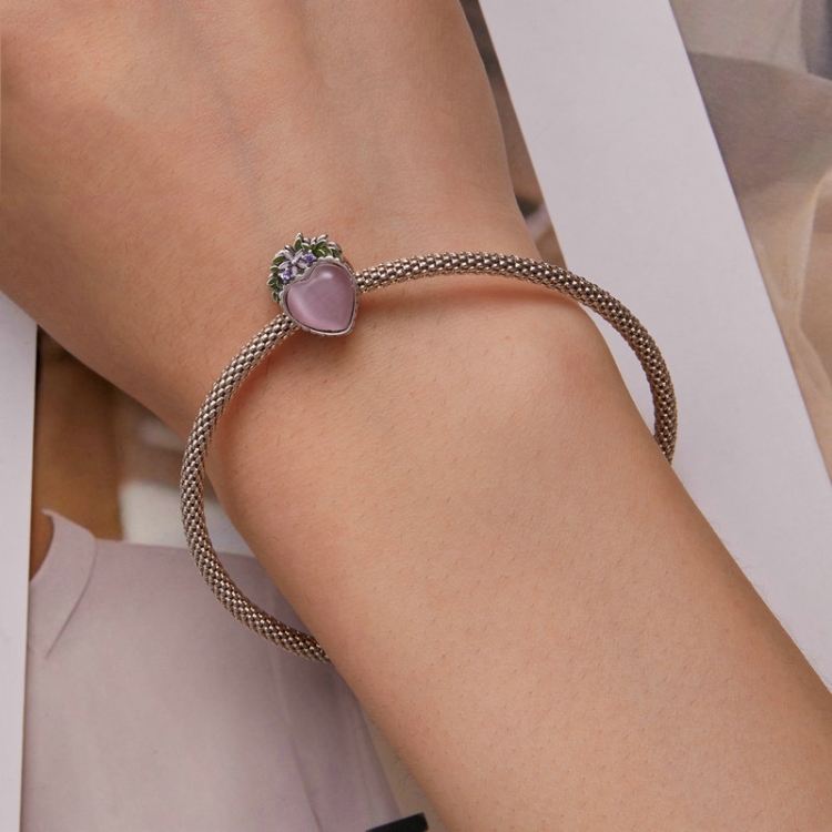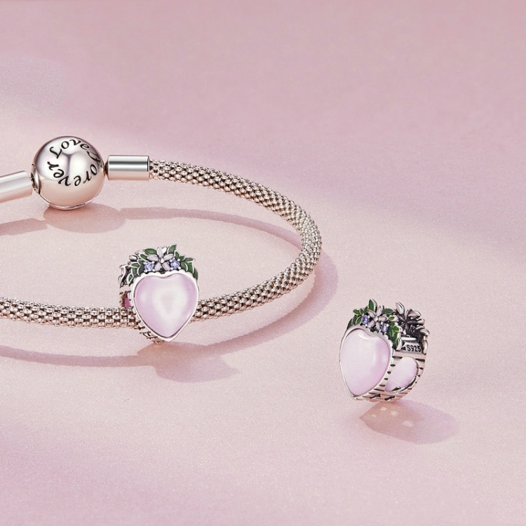 Sterling Silver S925 Heart Surrounding Flower Beaded Bracelet